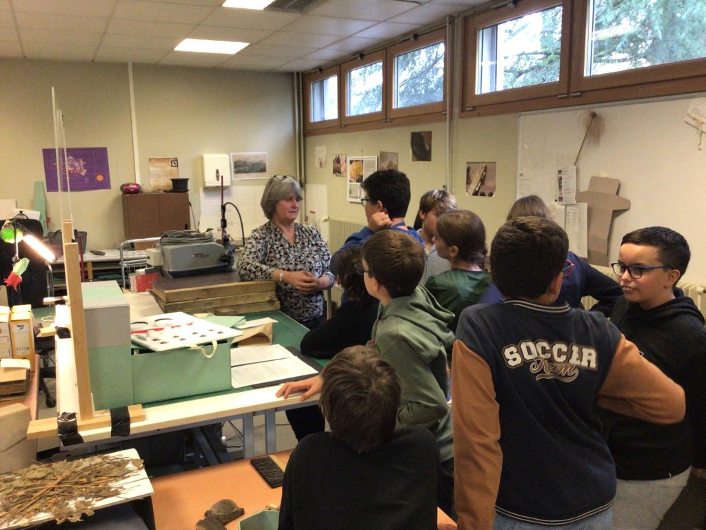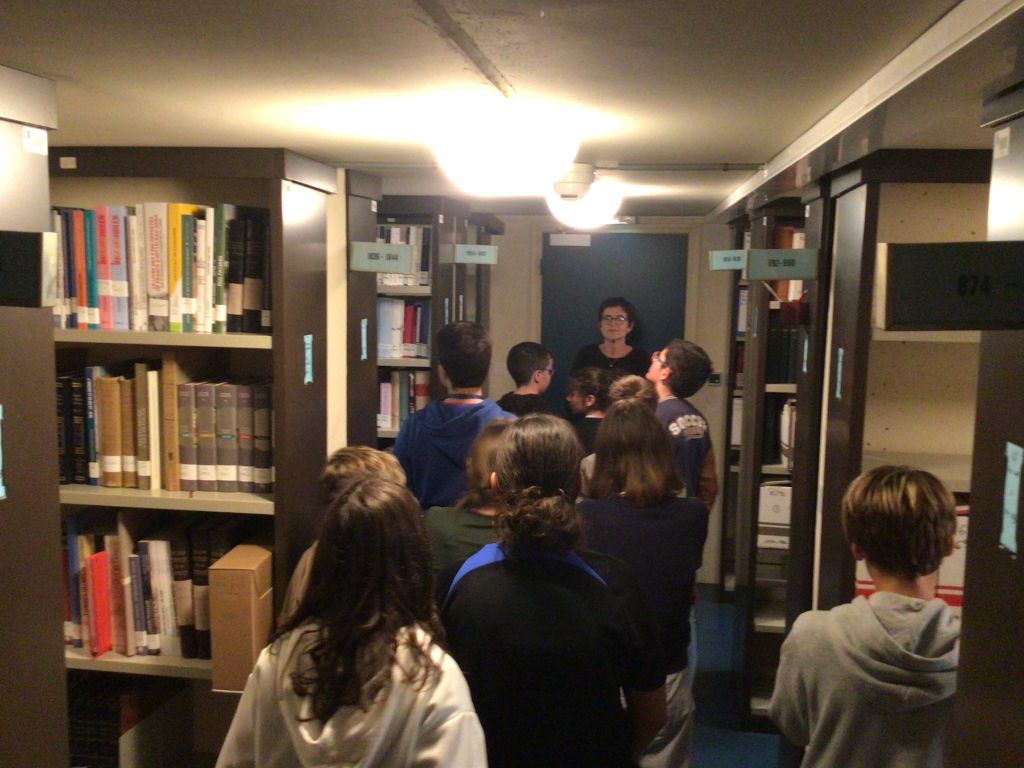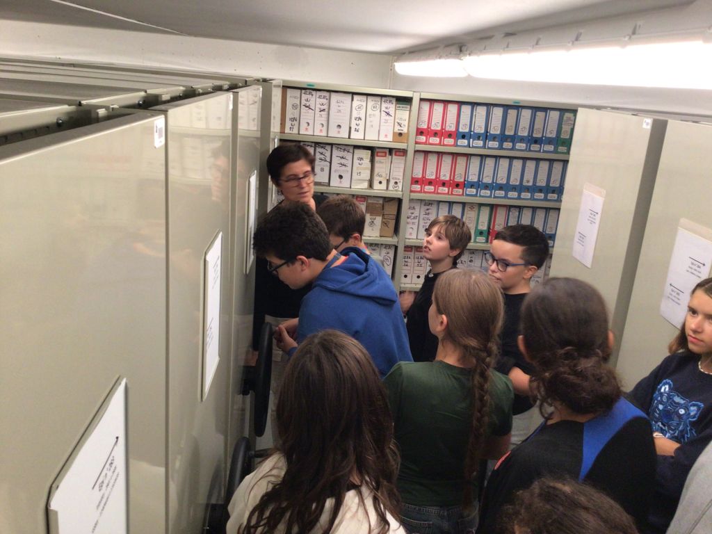 Un premier groupe d’élèves a découvert une partie des coulisses de ce lieu impressionnant (qui abrite pas moins de 22 km d’archives !), avec une visite portant sur le classement, le conditionnement, la numérisation et la restauration des documents.