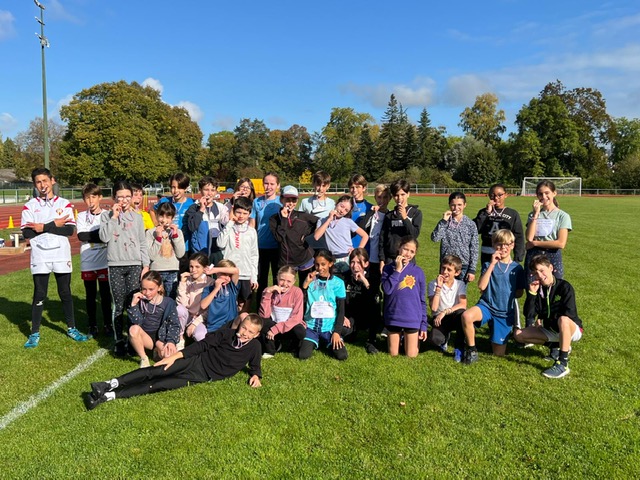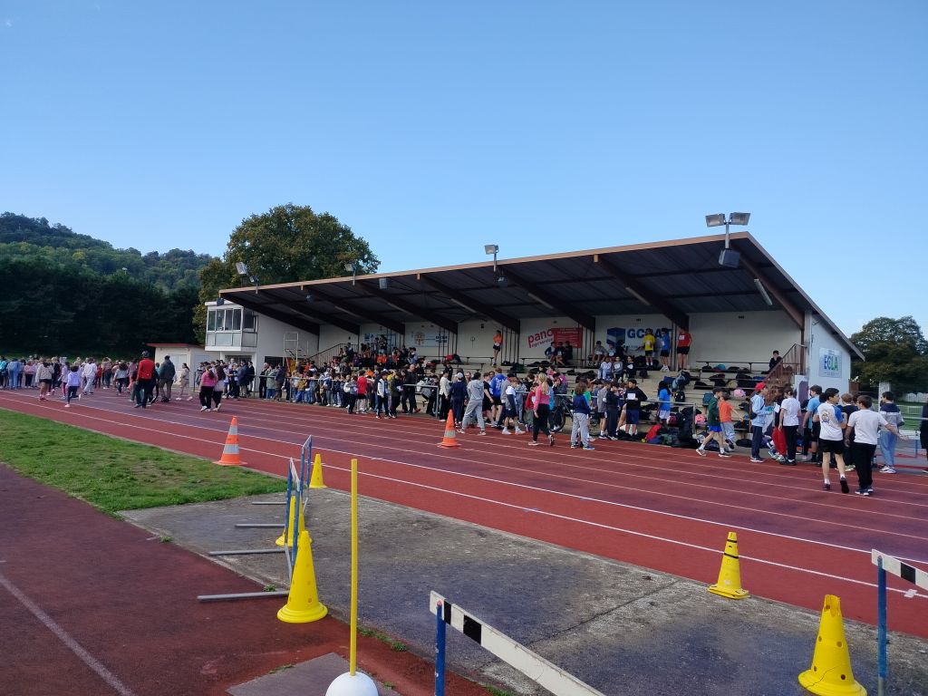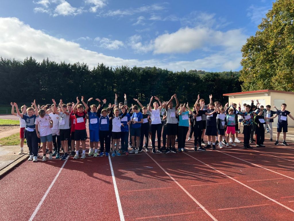 Le lundi 6 octobre, les élèves de CM1/CM2, 6ème, 5ème et 4ème étaient rassemblés au stade municipal pour le Cross d’établissement. Après un petit échauffement, ils se sont lancés sur un parcours de 1.3km d’abord sur la piste, puis sur terrain en herbe et retour sur la piste pour le final.